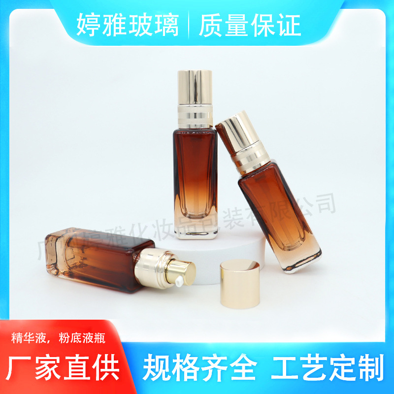 工場直売30ml偏平粉底液瓶圧ポンプ乳液瓶化粧品瓶旅行ガラス分注瓶