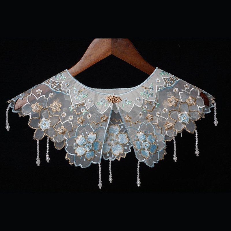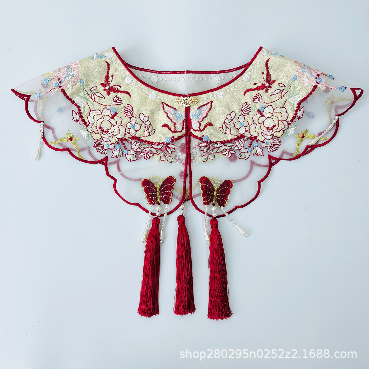 中国風の新しい漢服雲肩新しい中国風の重刺繍偽襟手作りビーズタッセル漢服マッチングショール