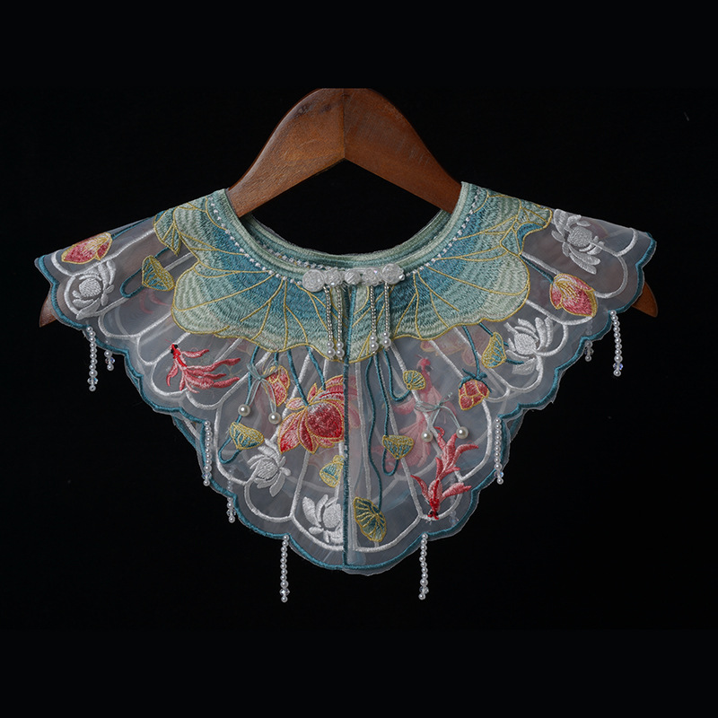 中国風童装漢服雲肩ベルト吊り穂金魚襟刺繍ガーゼ金花縁襟飾り襟小羽