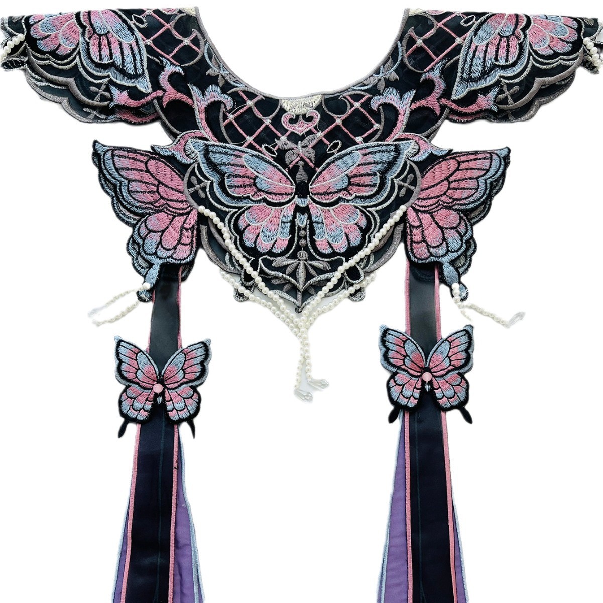 刺繍入りの蝶形の雲肩飾り、ビーズ付きの偽襟、子供服の襟飾り、漢服の雲肩飾り
