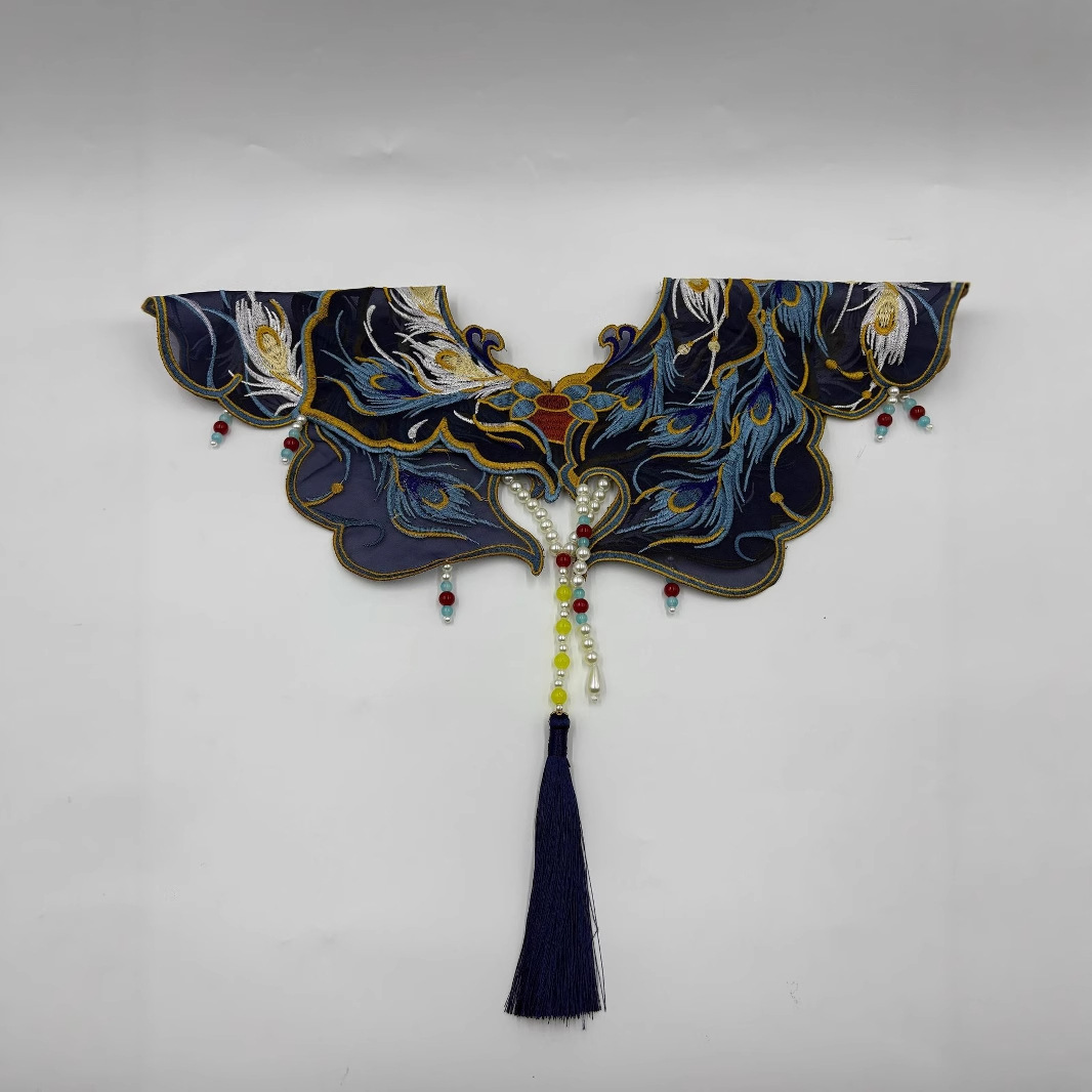 漢服雲肩大学生新中式馬面裙漢服披肩飾り刺繍偽襟孔雀羽藍雲肩