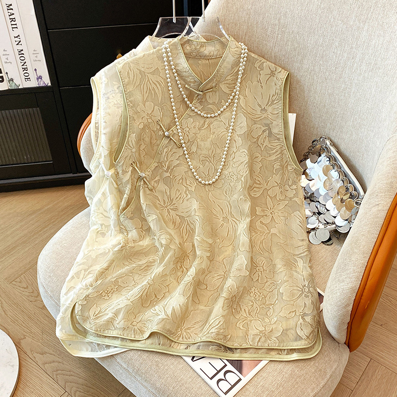 新しい中国風のライトナショナルスタイルのベスト、夏の薄い刺繍入りベスト、レトロなノースリーブジャケットトップのリアルショット