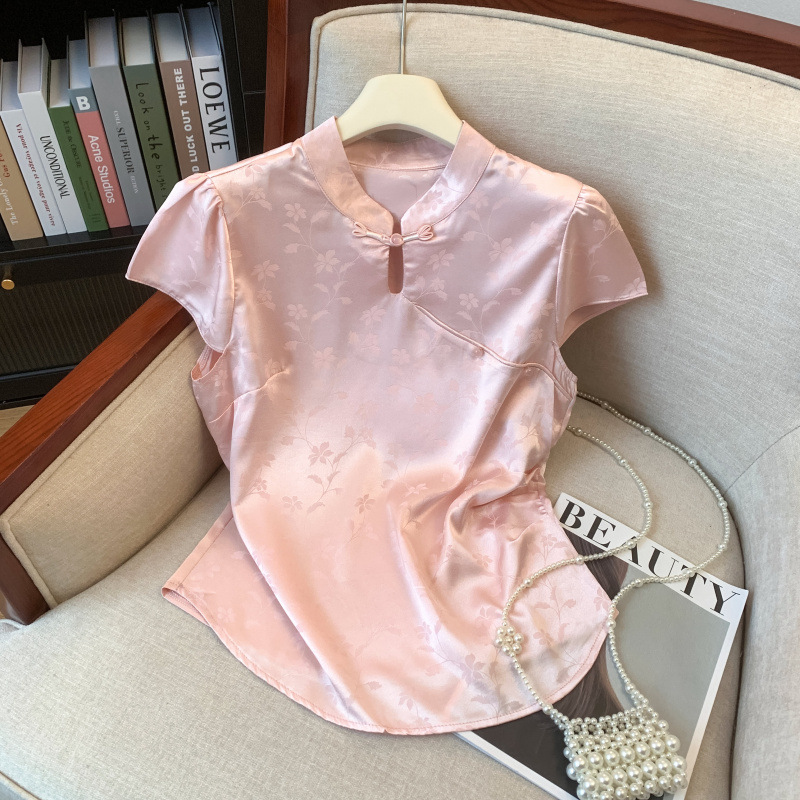 新しい中国風漢要素シャツ、国民風スーツ、女性の夏の小さなシャツ、気質ボタントップ