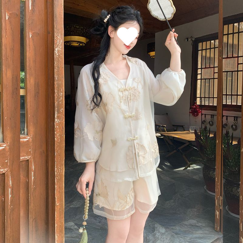 8756 # リアルショット刺繍入り新中国風婦人服国民風薄手コート春夏新作七分袖トップスーツ