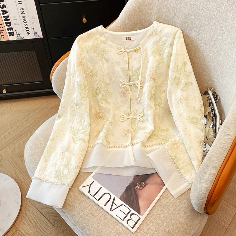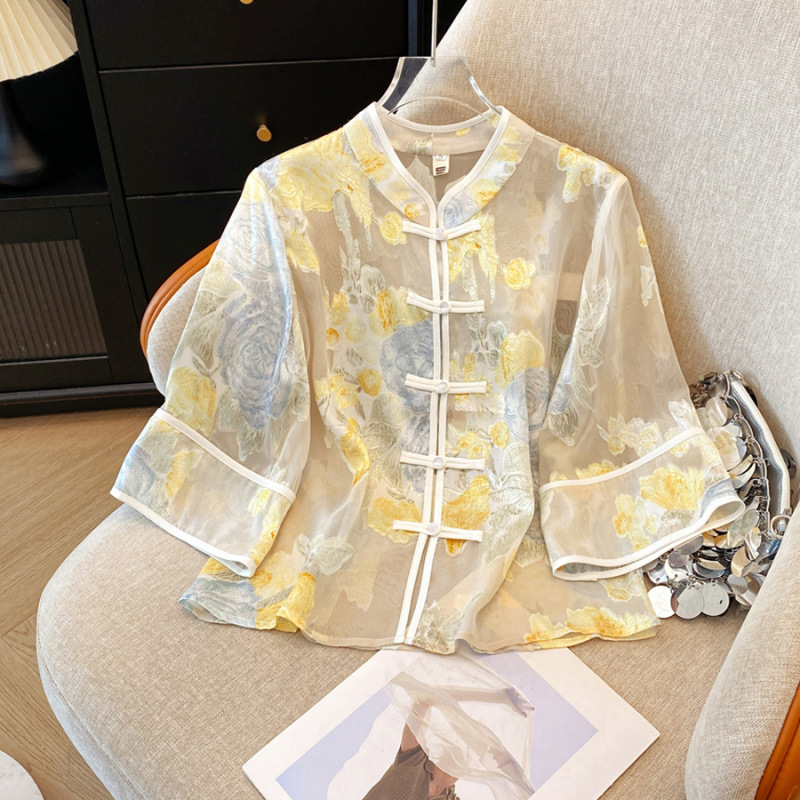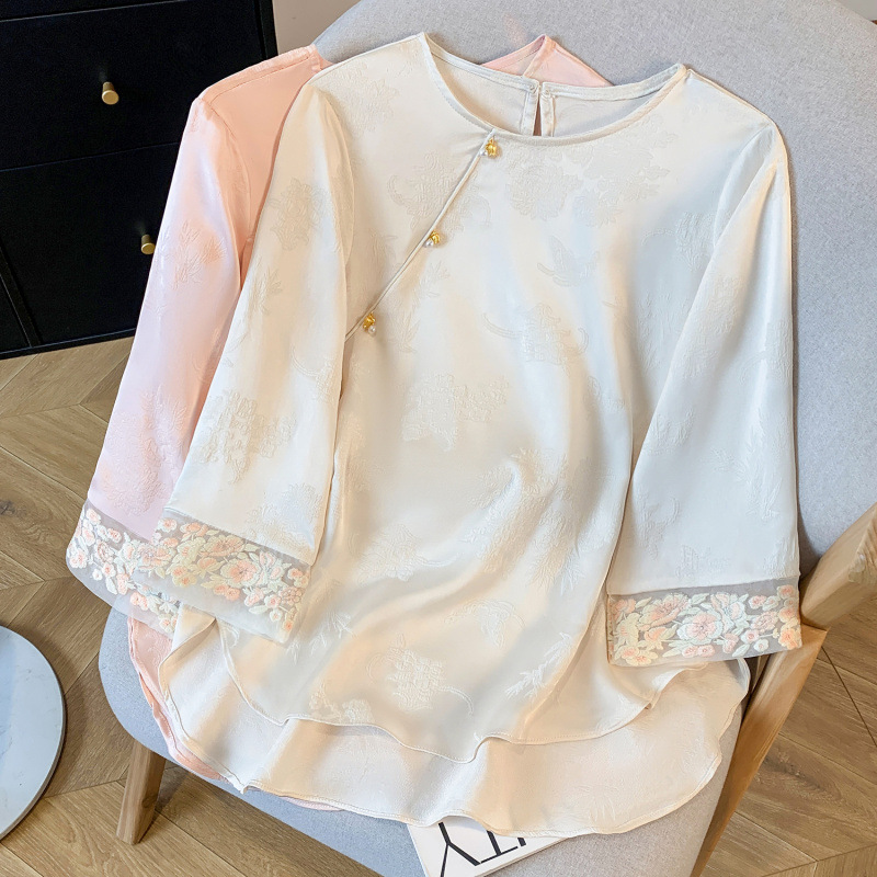 2025年新作夏国民風酢酸セクションジャカード刺繍トップス新作中国風ボタンダウンシャツの実物写真