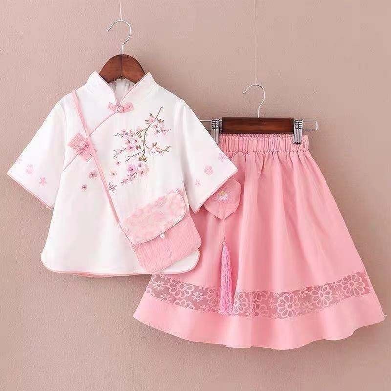 漢服子供の春と夏スタイルスーパー妖精中国風花妖精刺繍プリントシフォン胸丈スカート少女卸売
