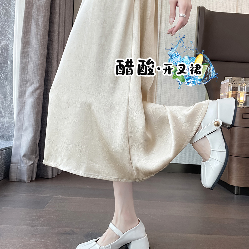 リアルショット在庫ありアセテートサテン高級スカート夏新作ハイウエストドレープ小柄ストレートAラインスカート