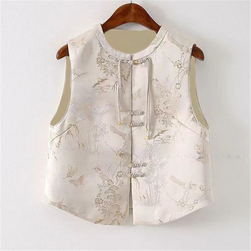 2025年の春の国風の新しい中国式の馬甲はやせている気質の設計のファッションのボタンの外で洋風の高級な上着を着ます。