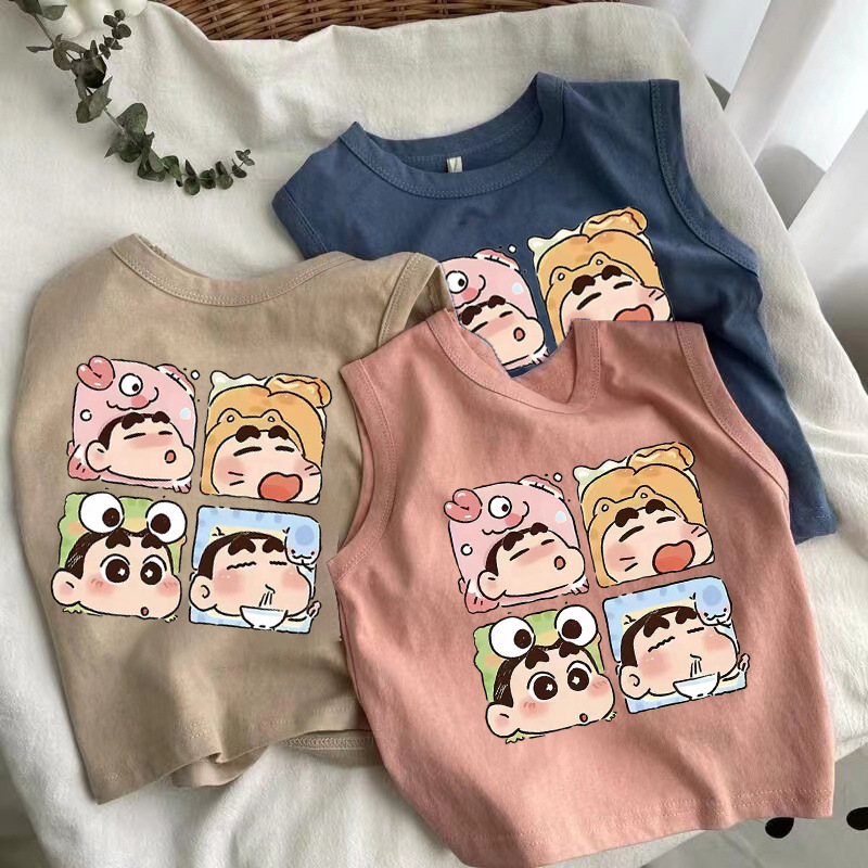 【4938人が好評】100綿の子供の新しいベストアニメ夏の女の子のプリントベストのクレヨンが小さい