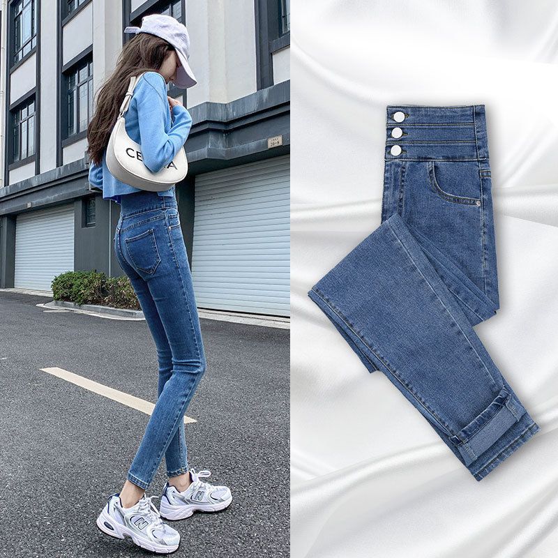 ジーパンの女性の小さい足の秋の服の2022年の春と秋の新型の高い腰の修身はやせている鉛筆のズボンの1882を現します。