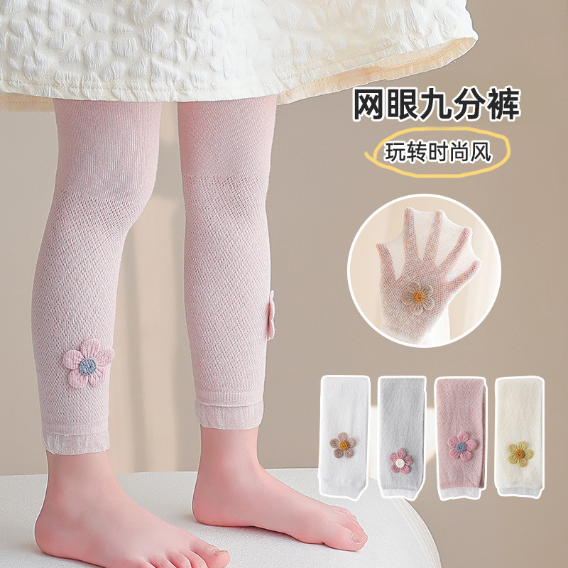 女の子の夏のレギンスブックメッシュベビー春と秋のアウターウェアベビーコットン9点白子供用ストッキング