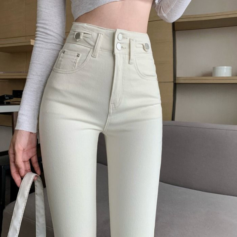 女性用ホワイトジーンズ2025春秋新作スリムハイウエストスリム万能ストレッチペンシルパンツトレンディ