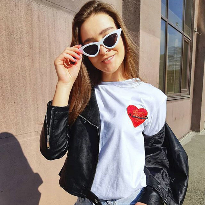 2020夏の新型欧米国境を越えた愛の文字刺繍ピン丸首半袖tシャツ女装上着