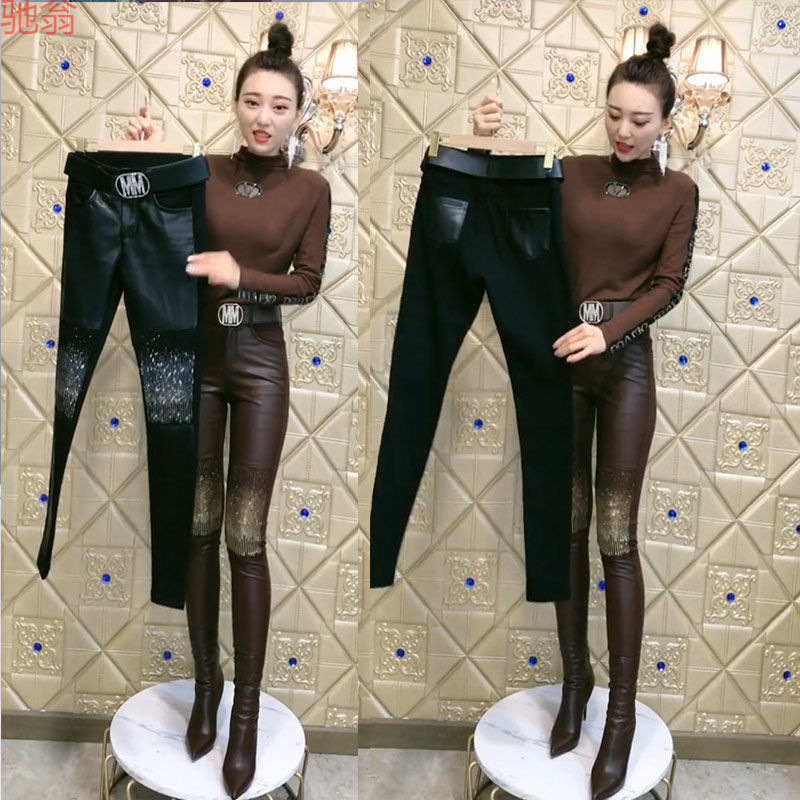 Y9Z欧商品ネット赤爆金皮ズボン高級水洗い皮つなぎアイロン鉛筆ズボン痩せズボン秋冬