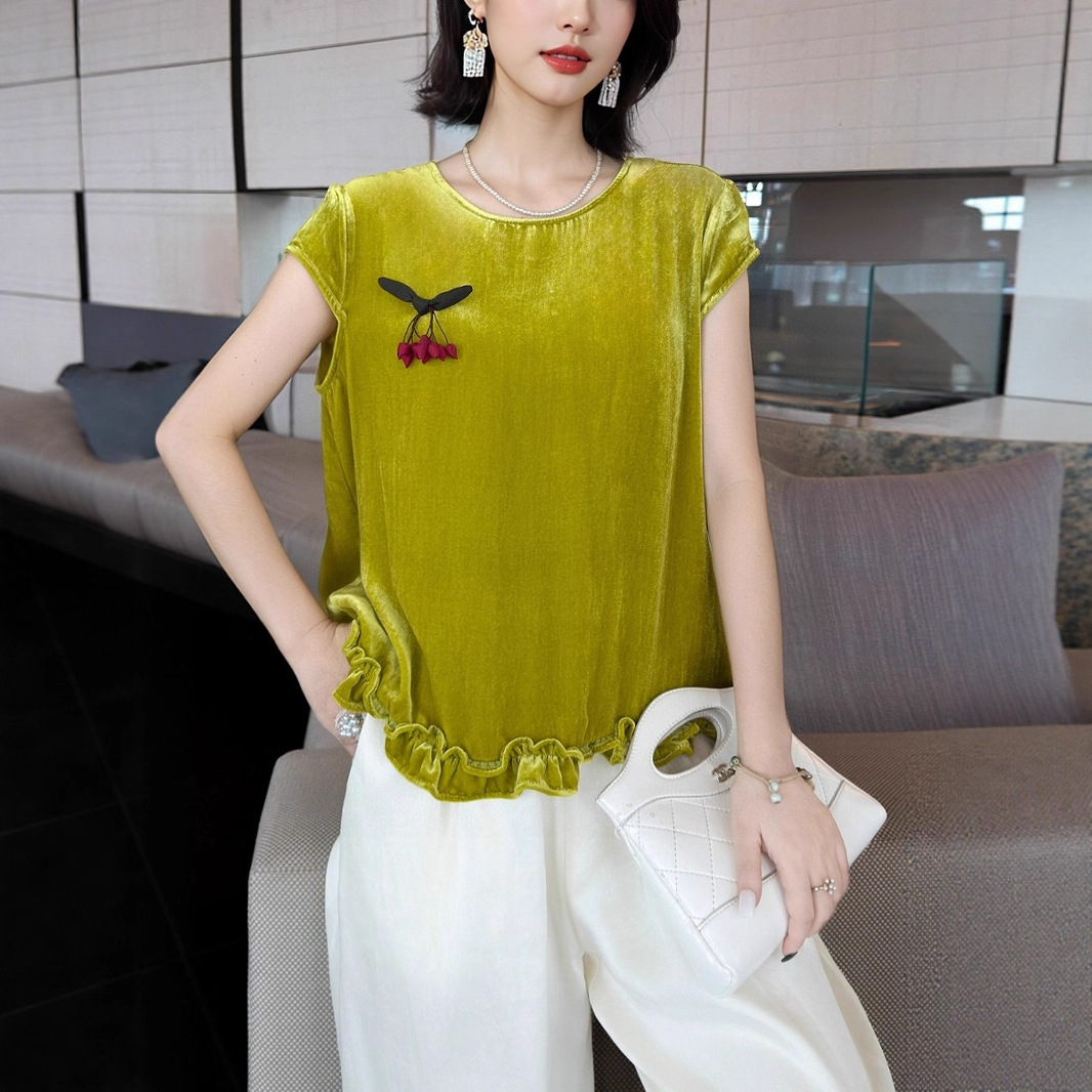 Nanyouの新しい夏のシルクベルベットとローズピンのトップスは、シンプルで多用途、ファッショナブルでエレガントな女性用シャツです。
