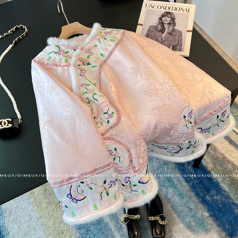 2024年秋冬モデル新中国風綿服甘美減齢パイルステッチ丸襟盤ボタン刺繍コート女性