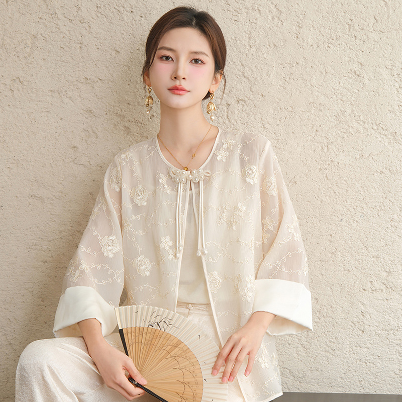 唐装風女性用チャイナドレス改良版旗袍トップス高級感あふれる新中式禅意ボタン付きジャケット2025年秋
