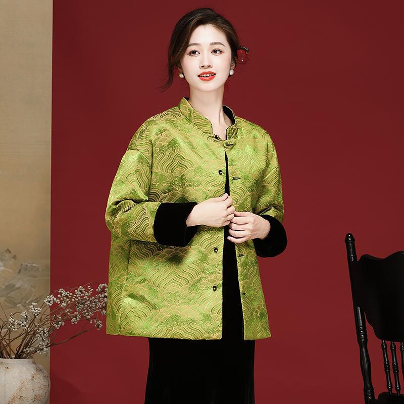 南油女装2024冬の新型シルク植毛ベルベット綿服コート女性は保温中国風上着を厚くした