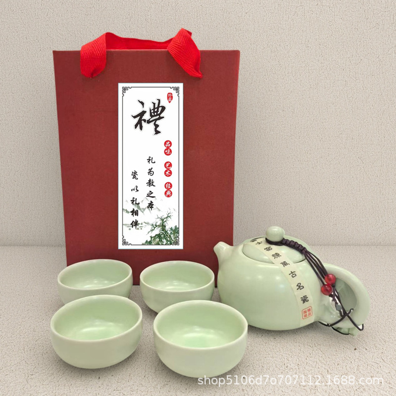 汝窯茶器セット家庭用オフィスティーポット4S店ギフト会社年次総会ビジネスギフトお土産ロゴ