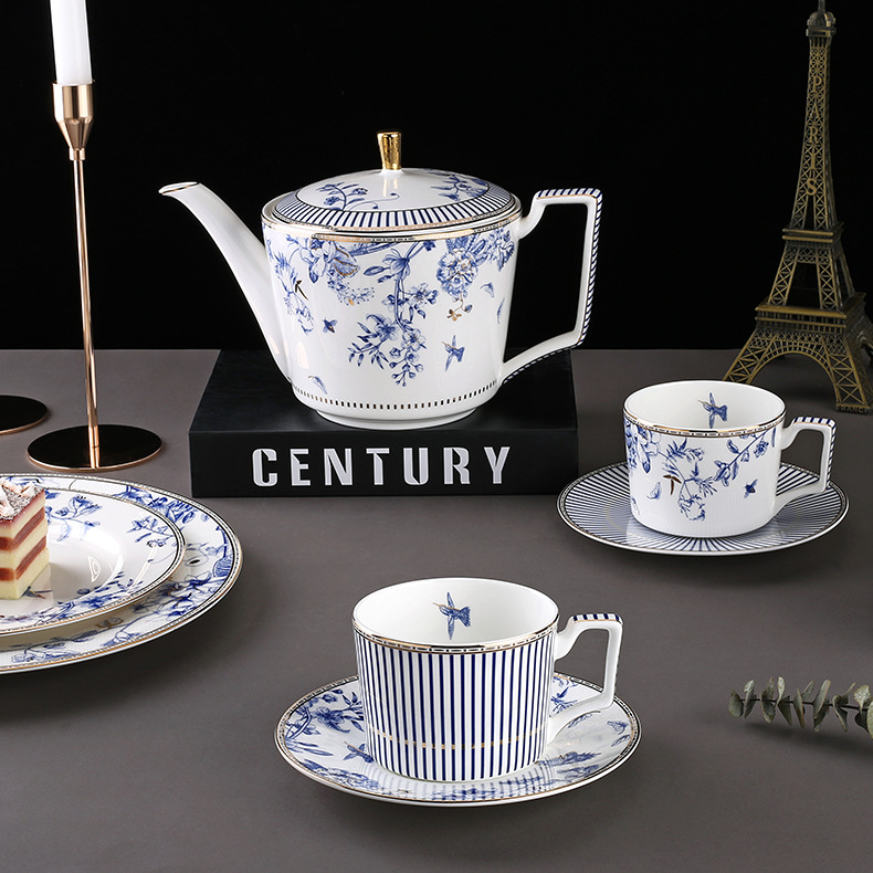 ファロリーシ ヨーロピアンスタイル 骨磁器 ティーセット ギフトバッグ付き プレゼントボックス 茶水分離ティーポット 陶器 アフタヌーンティーセット