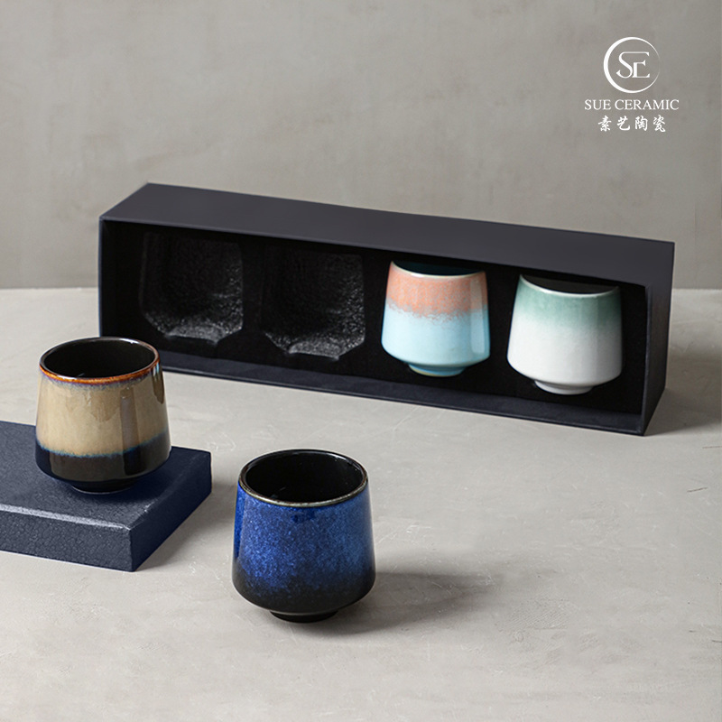国境を越えた売れ筋セラミックカップセット、クリエイティブな日本のレトロな窯変茶カップ、ハイエンドのイベントギフトのカスタマイズ