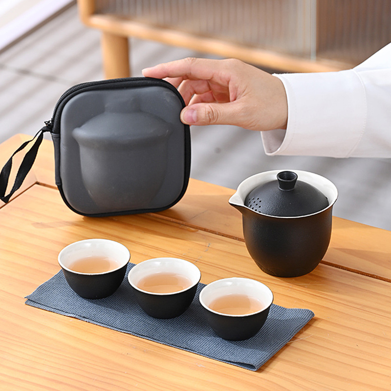 ガラス快客杯旅行茶器プレゼント携帯用専用バッグセット屋外工夫茶杯ティーポット