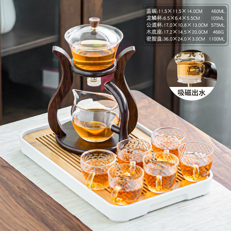 2025 新しいガラス自動ティーセットホームライト高級ティーカップ磁気ティーポット怠惰な人茶
