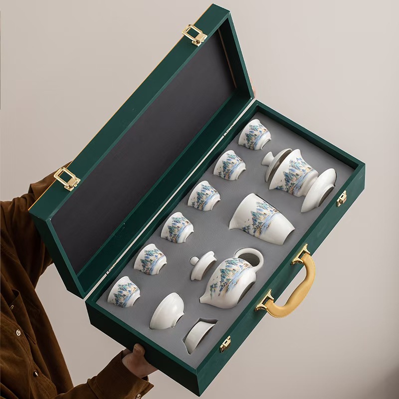 12 ピースセラミックカンフーティーセット三才カバーボウルビジネスギフト従業員福利厚生ギフトボックス青磁