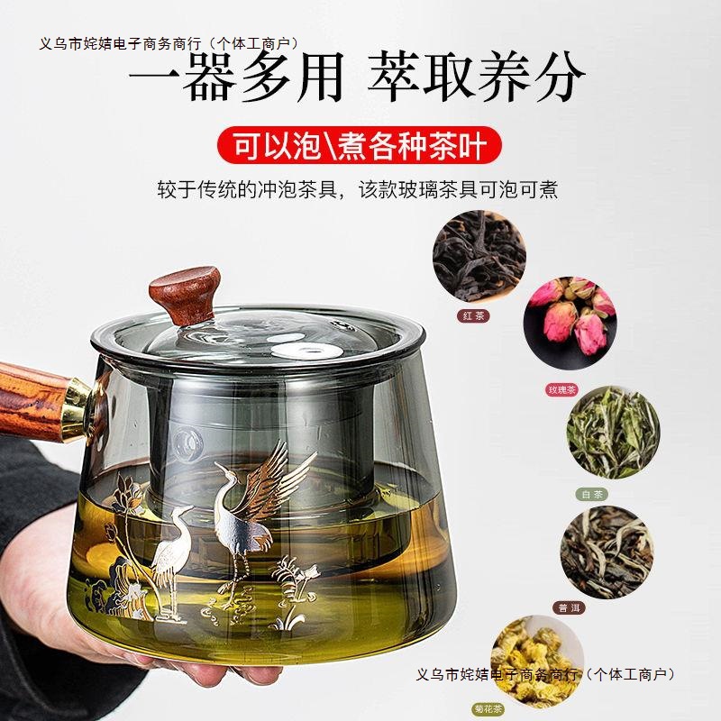 耐熱ガラスカンフーティーセット家庭用ティーメーカー透明ティーカップハンドル付き紅茶フラワーティーポットオフィスティーポット
