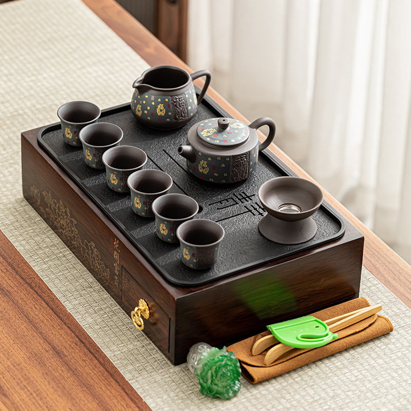ホームティートレイリビングルーム紫砂ティーセット高齢者向けカンフーギフトボックスの完全なセットXOティーカップハイエンドティーポットIK