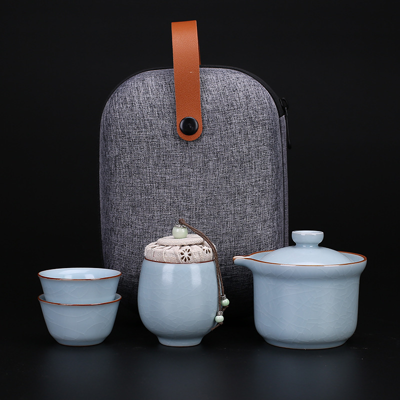 黄汝カンフー茶器セット兄窯ティーポット陶磁器泡茶器ビジネスお土産開業客先に送る