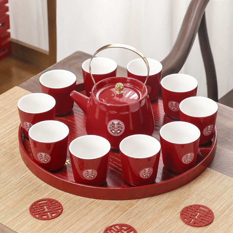 ウェディングティーセット、ティーポットセット、新婚夫婦のお茶カップ、赤いセラミックウェディングティーポット、ティーカップ、結婚式の贈り物