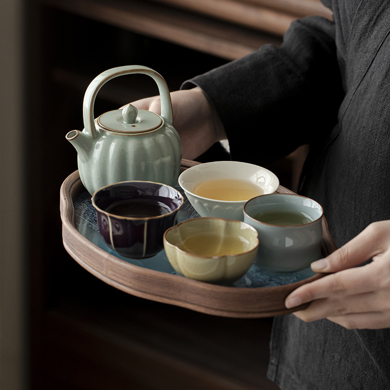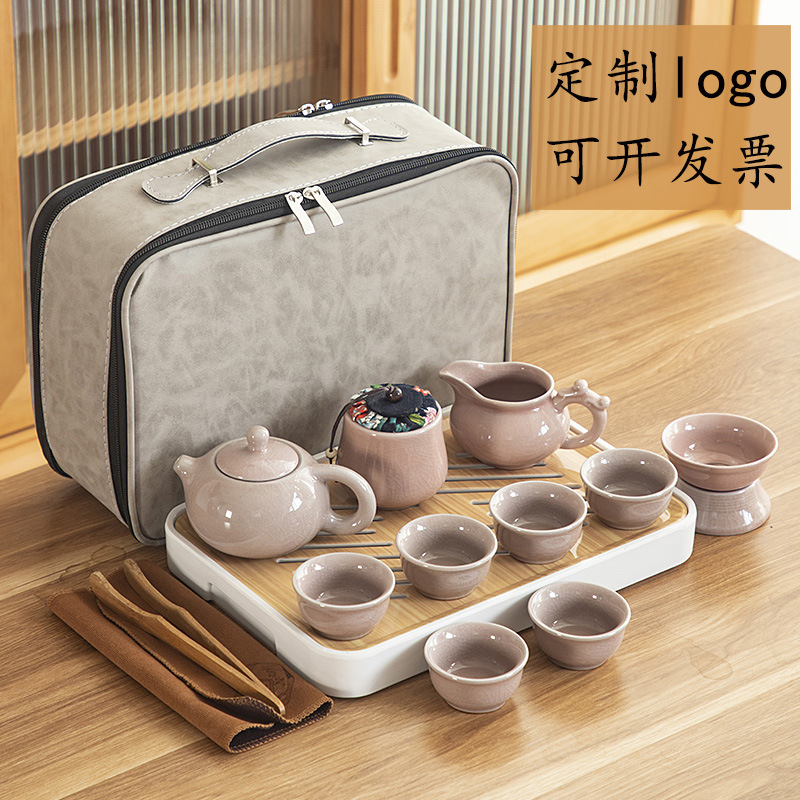 トラベルティーセットシンプルなセラミックティートレイポータブル屋外ティーテーブルカンフーホーム2025新しいカスタマイズされたギフト