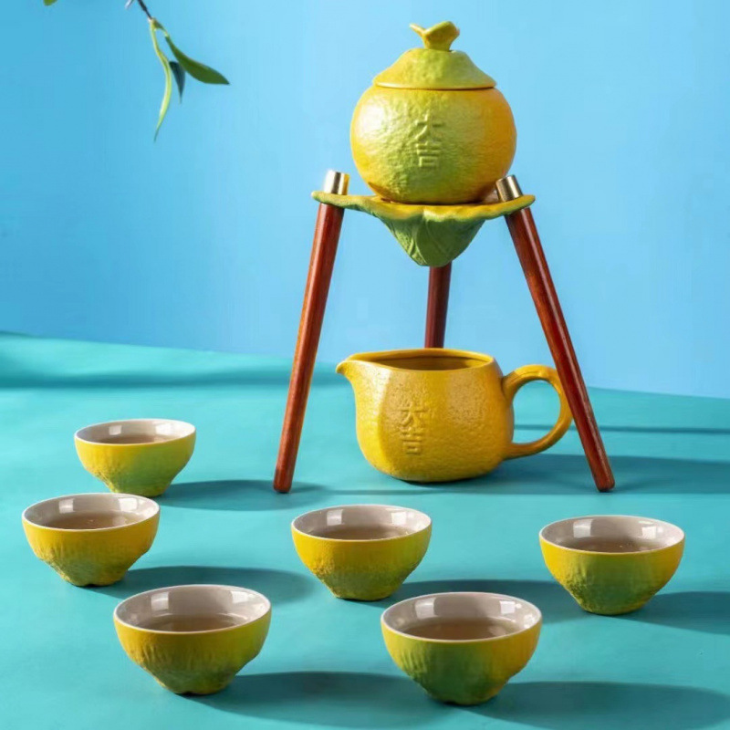 セラミック自動ティーメーカー、レイジーティーセット、幸運の陶器ティーセット、記念品、会社記念日ギフト