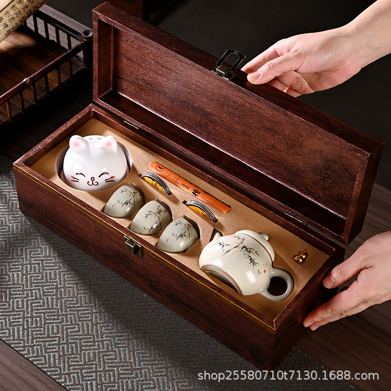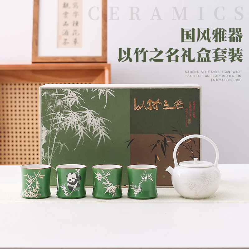 中国風の墨竹カンフー茶セットホームオフィスギフトハイエンドセラミックティーポットティーカップ香炉ギフトボックス