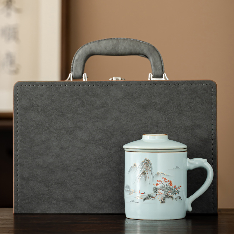 汝窯オフィスカップセラミックマグカップ茶水分離フィルターカップお茶用カップ水カップ茶器オフィスカップセット