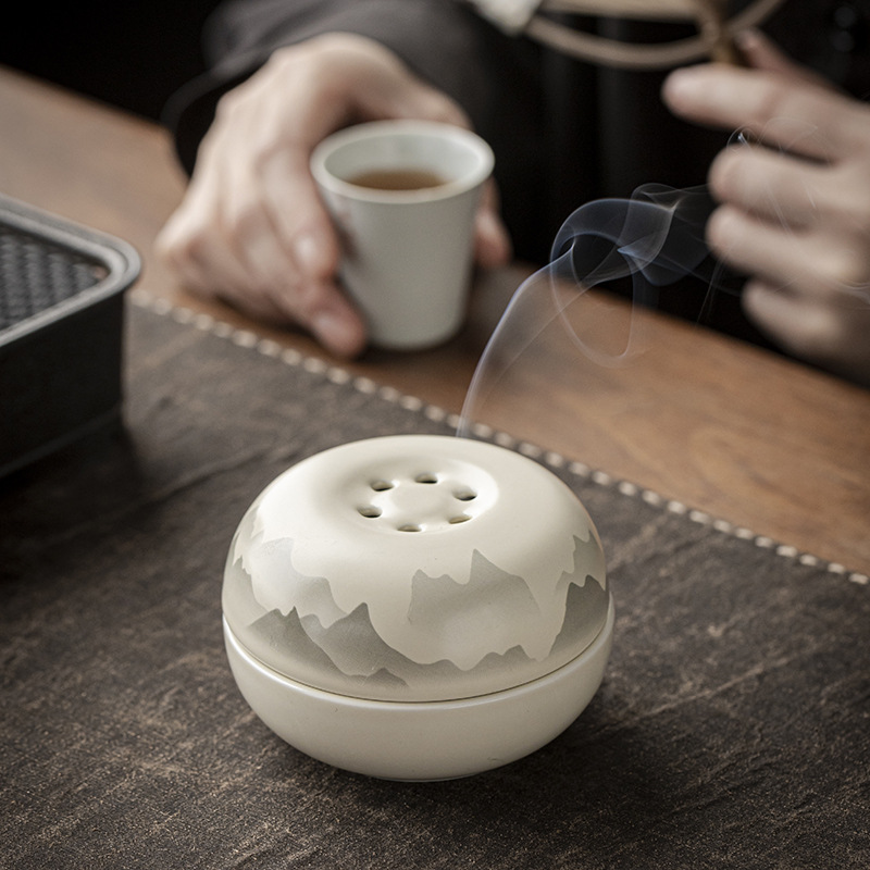 青墨草木灰手描き山水中国式陶磁器盤香炉家庭用檀香薫香炉室内香薫炉置物