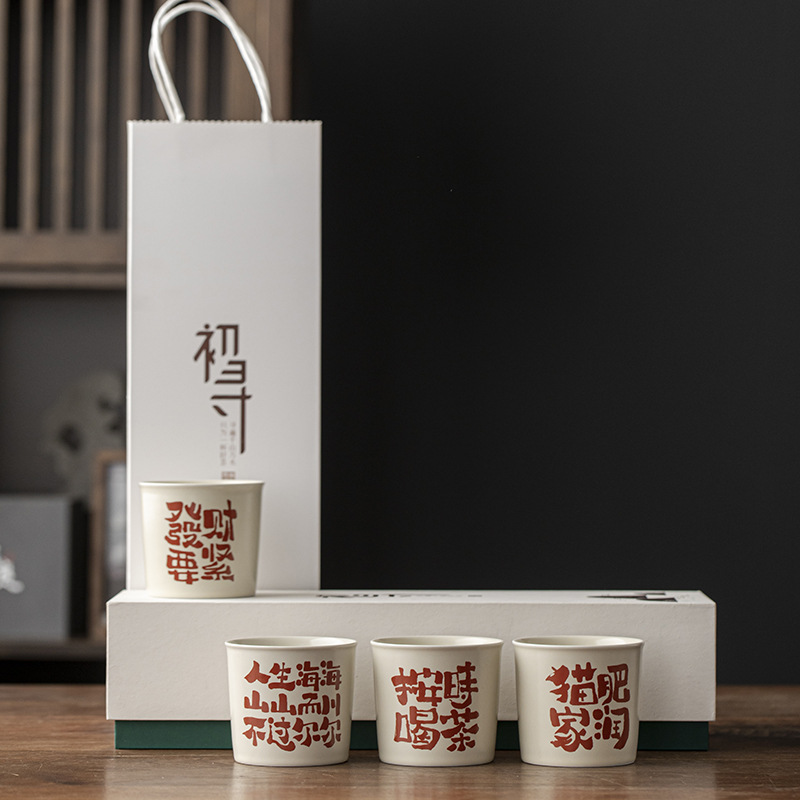黒陶オフィスカップギフトボックス茶水分離3点セットカップカップカップカップ会社開業イベントお土産