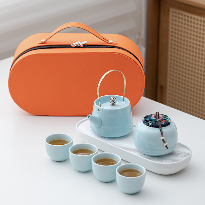 汝窯提梁壺旅行茶器セット一壺四杯の工夫茶器シンプルなお茶を入れる携帯型ビジネスプレゼント
