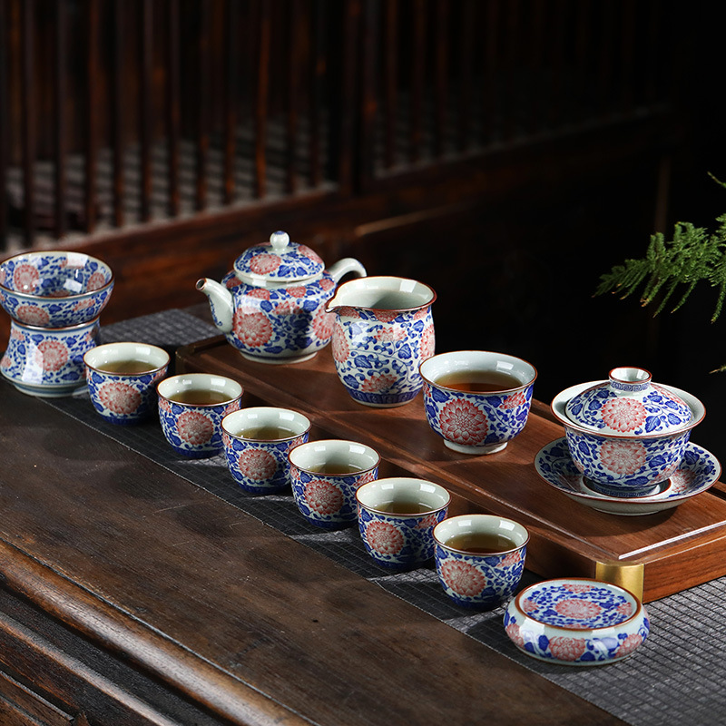 景徳鎮中国式手描き青花磁器茶器セット家庭用陶磁器高級軽豪華シンプル茶杯高級ティーポット