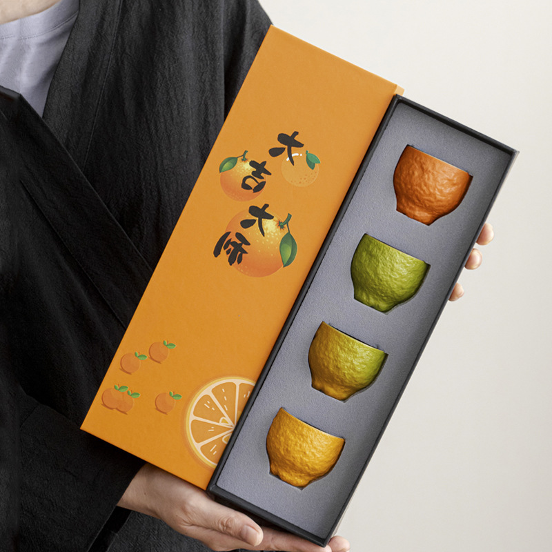 クリエイティブカップ祝日プレゼント陶磁器みかん品茗単杯茶碗文創礼箱カスタムロゴお土産
