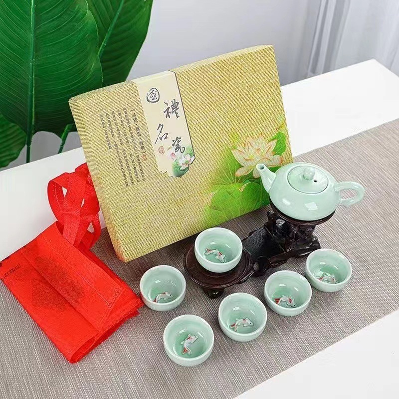 工夫茶器小徳化青磁茶器鯉杯陶磁器ティーポットセット