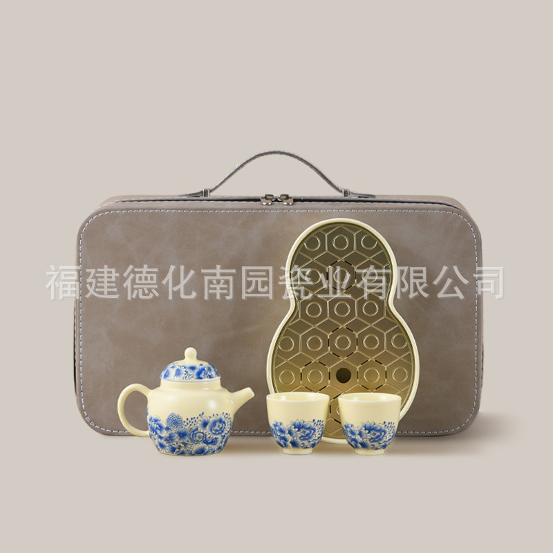 青と白のトラベルティーセットポータブルティーポットカンフーティーカップティートレイアウトドアキャンプハイエンドギフト