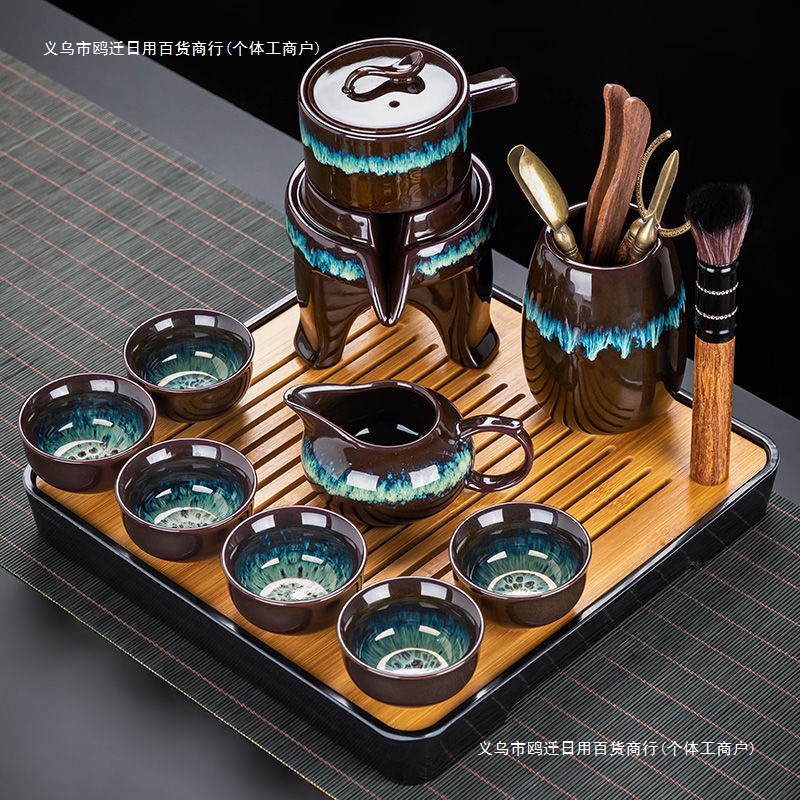 窯変全自動ティーセット、家庭用怠惰な石臼ティーポット、セラミックカンフーティーカップティーメーカーの完全なセット