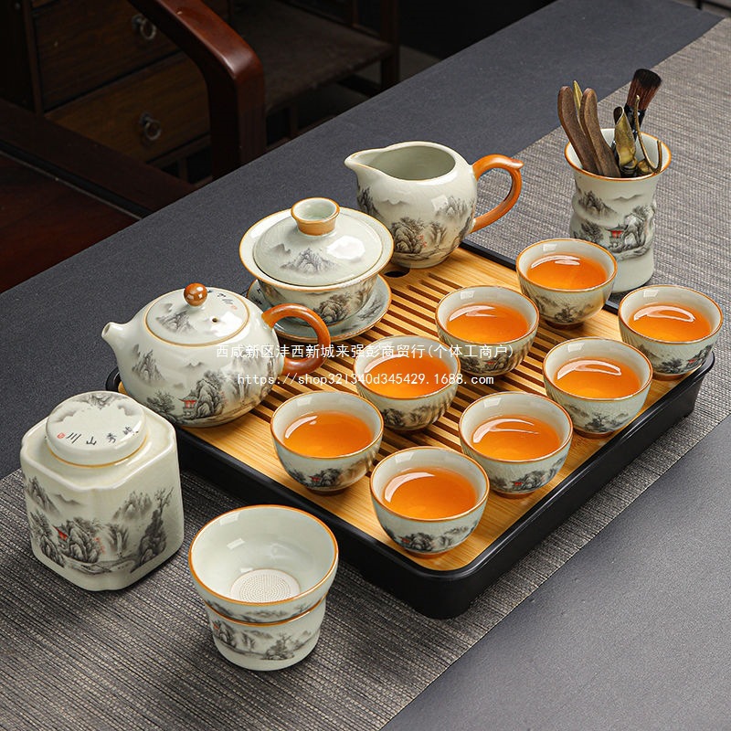ル窯ティーセットホームオフィスお茶作りカンフーティーセットビジネスオープニングイベントギフトお土産