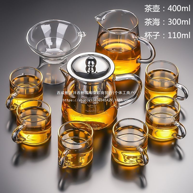 家庭用ティーセット、高温耐性ガラスティーセット、ティーカップ、オフィスカンフーティーセット、ティーポット、ティーテーブルの完全なセット