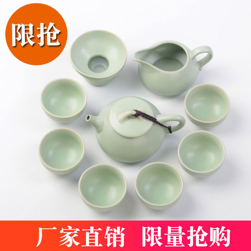 Ru Kiln ティーセット家庭用シンプルなティーカップティーポットティーシー完全なティーセット 10 ピースセラミックギフトボックスドロップシッピング