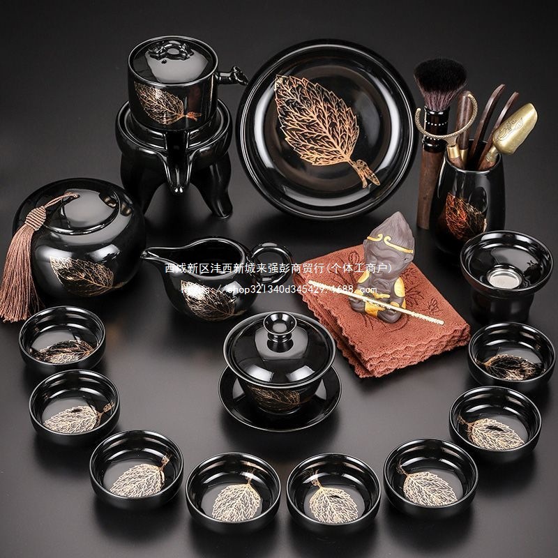 新しいハイエンドカンフーティーセット家庭用セラミック木製葉カップ全自動セット怠惰な石挽きフルセットティーセット
