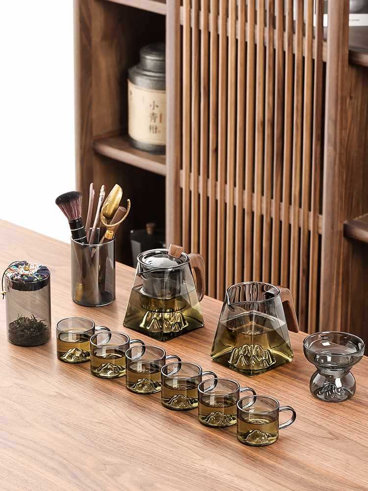 ♤ カンフーティーセット 2025 新しいホームライト高級ガラスティーポットティーカップオフィス来客用