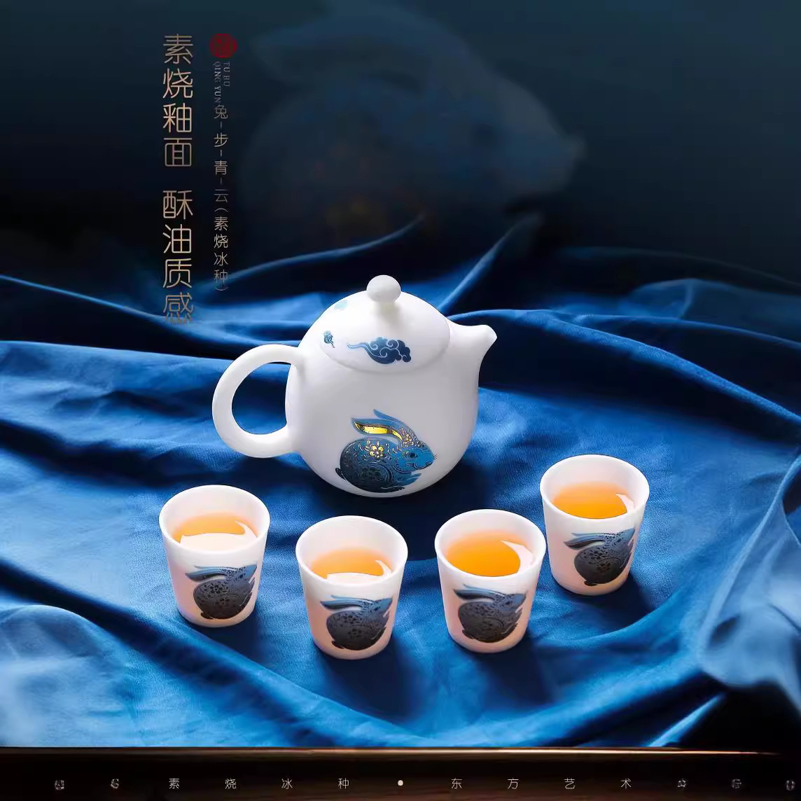 天青ル窯ル磁器カンフー茶セットホームライト高級 2025 新しいティーカップティーポット